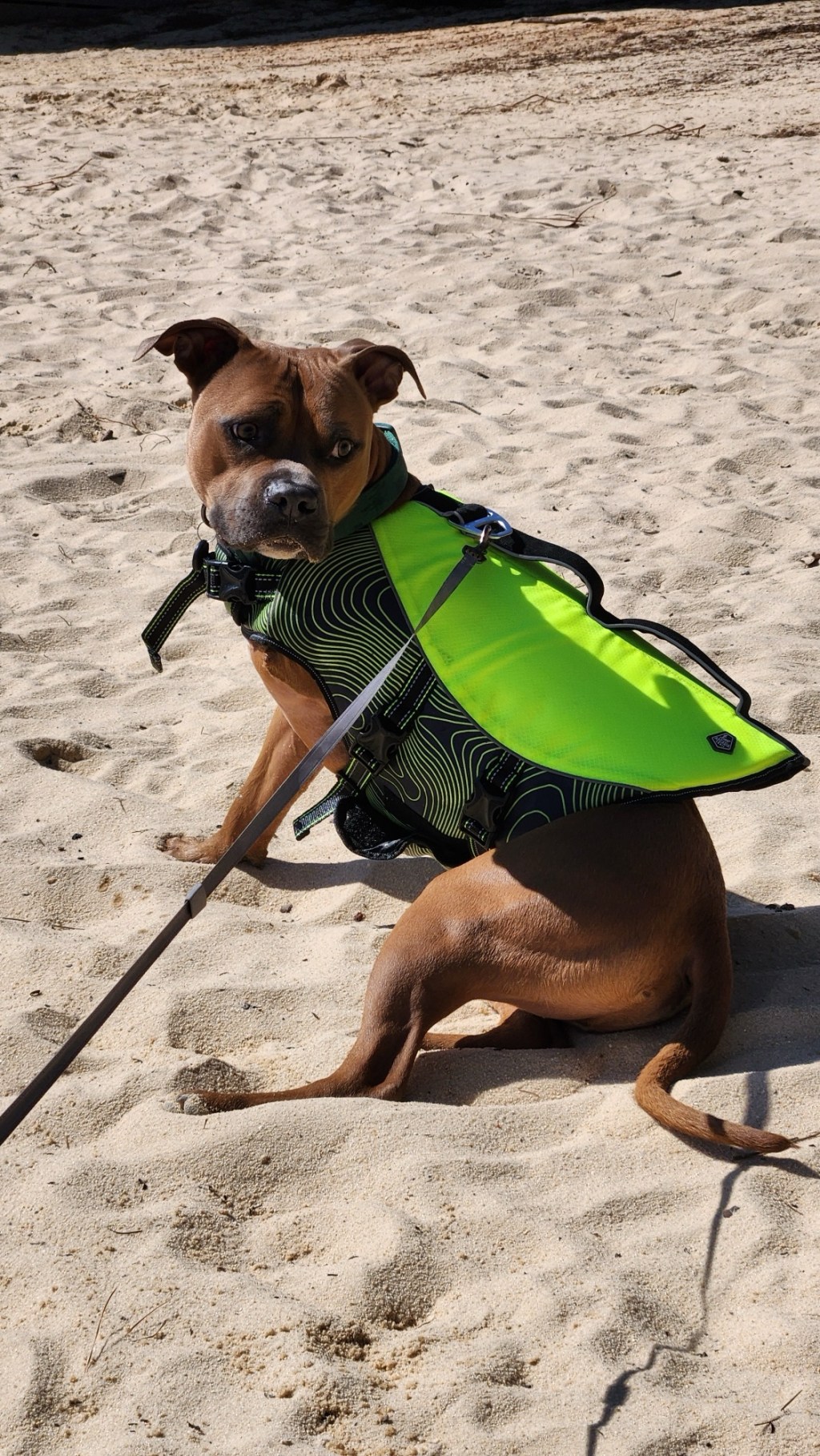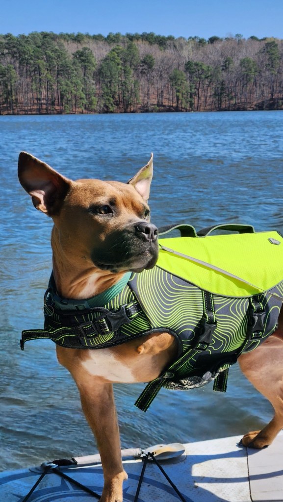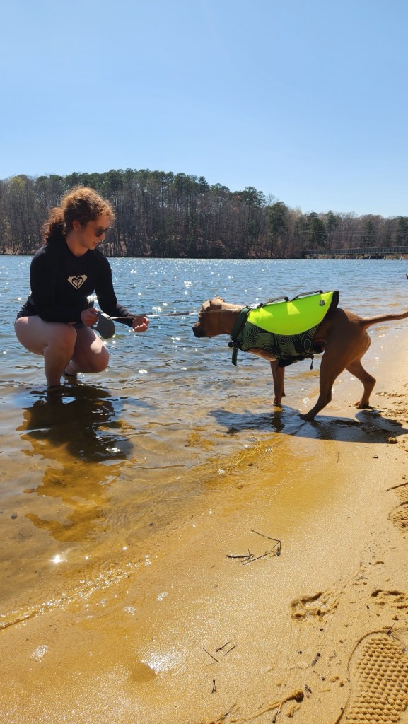 Make sure that you’re keeping your dog safe in the water! Trace is pretty heavy, and I doubt he can swim very well with only one arm, so I made sure to buy him a life jacket before introducing him to the water.