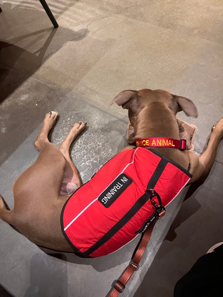 All of these behaviors are not ideal! During Trace’s service dog training, I have tried to mitigate some of these behaviors. However, these behaviors are not ideal for any dog and human combo. Helping your dog feel secure, with or without you, can be a great way to reduce their anxiety.