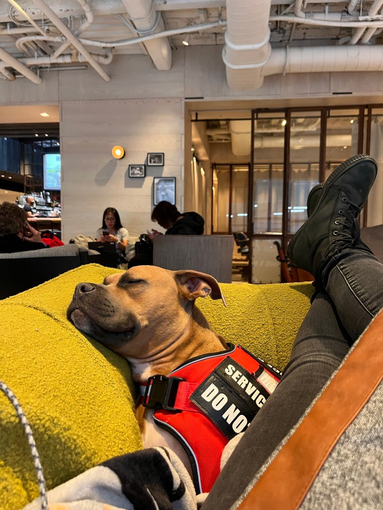 I’m sure all of you see this coming, but we’re going to do a series later about air travel with your service dog, so I won’t get into all of the tips and tricks that went along with that. Just know that traveling with a service dog complicates air travel but makes it easier at the same time!