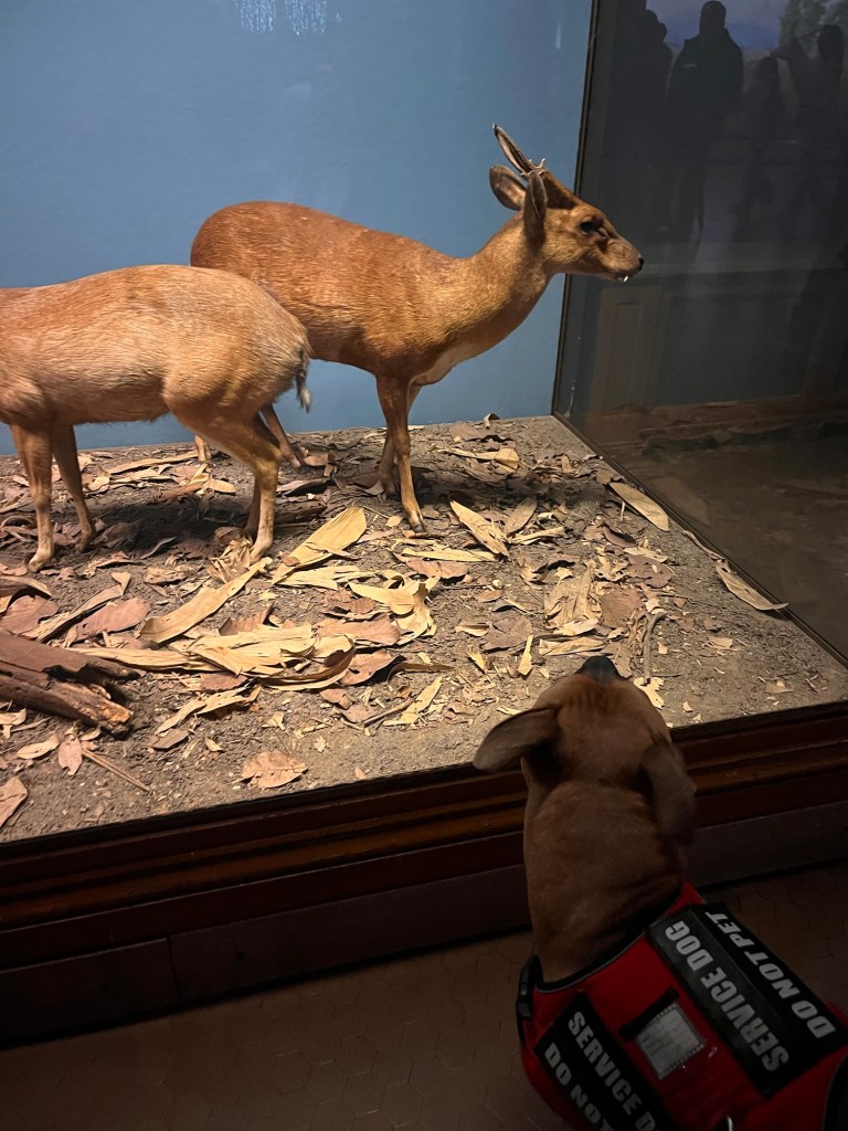 From there we got to see the planetarium show, and that made me feel smaller than I have ever felt in the best way. It focused on planetary movement and the expanse of the universe. It was also surprising service dog friendly! Trace slept for most of it tucked up under my seat but ended up finishing the show in my lap. The Natural History Museum was also incredibly service dog friendly as a whole and only asked the legally allowed questions of us both.